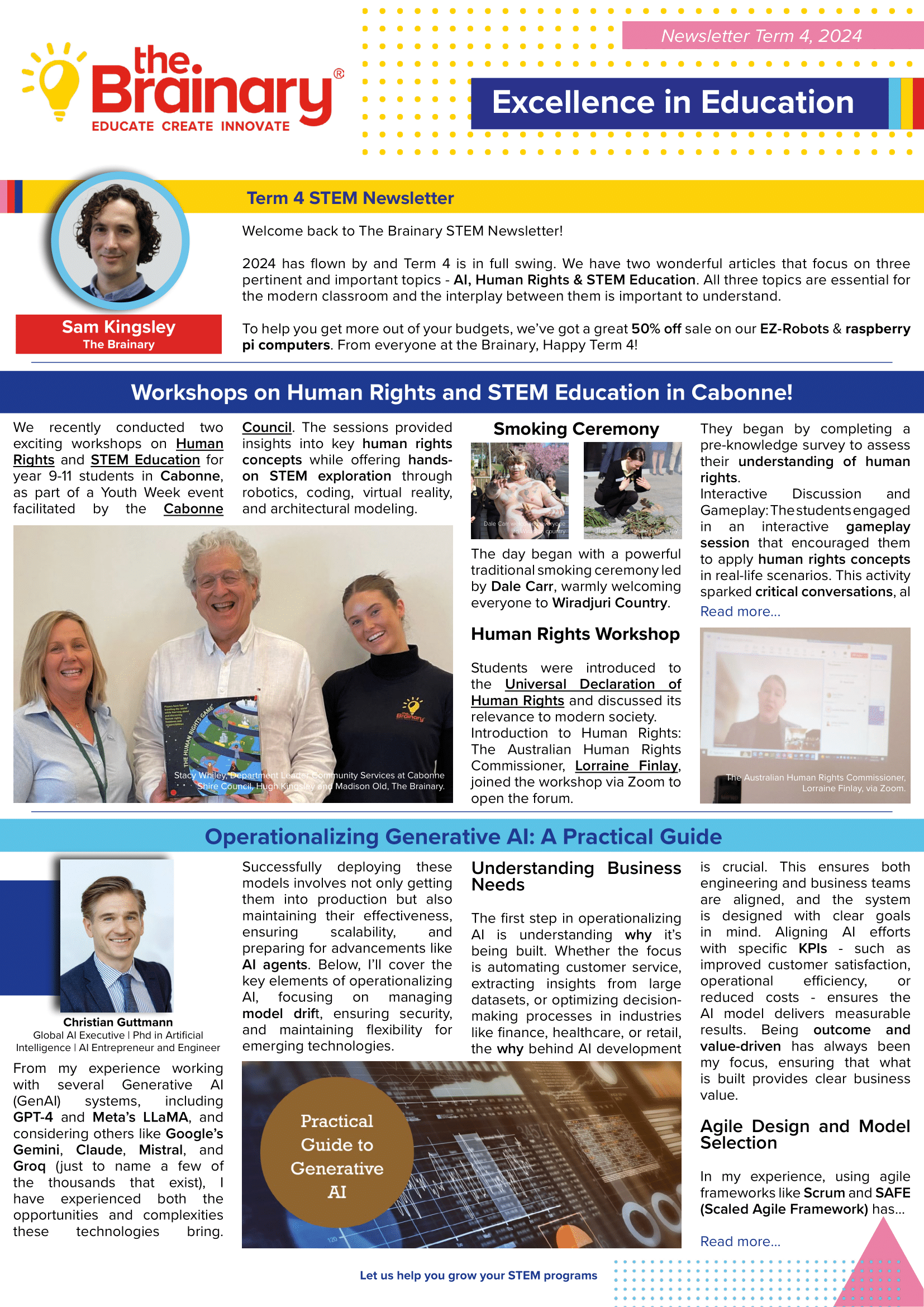 2024 has flown by and Term 4 is in full swing. We have two wonderful articles that focus on three pertinent and important topics – AI, Human Rights & STEM Education.