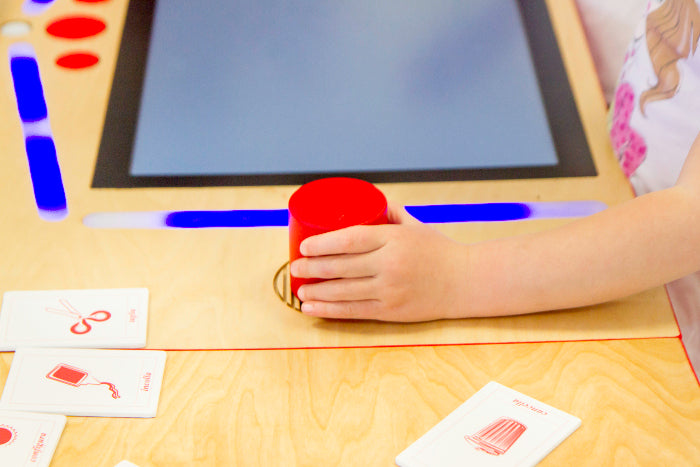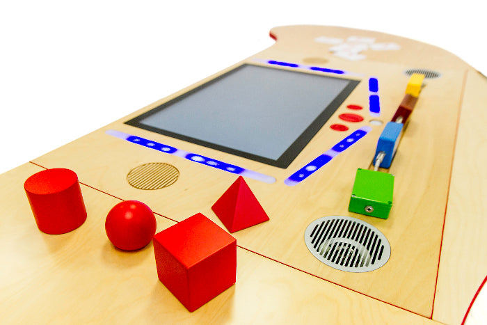 A physical object for storage, representing a tactile equivalent of a “folder” common in windows-based software. When a child places their wooden shape (cube, sphere, etc…) on the scanner, i-Theatre opens their unique folder of content on the touch screen.