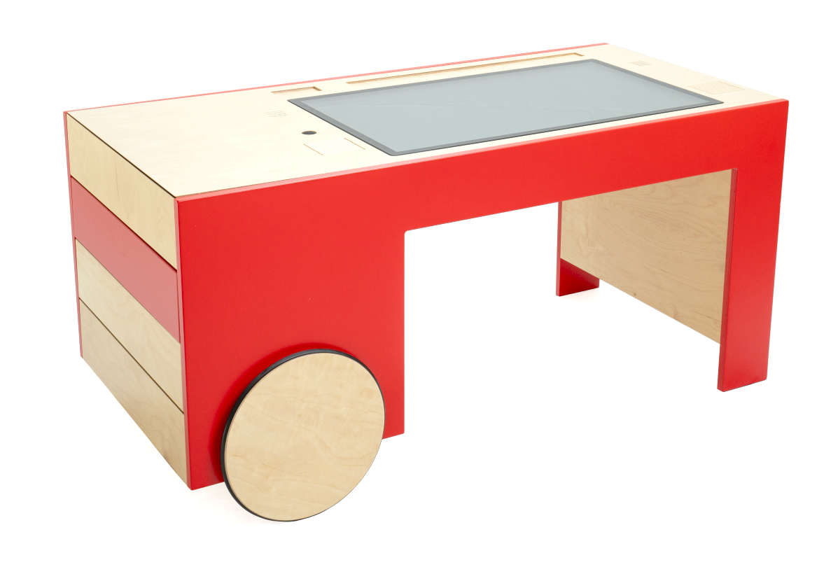 Made in its essential component of birch wood, by warm and homely feeling, and featuring an interface-to-digital made of tangible objects, it reveals itself to be a fundamentally composite object, created out of the delicate search for a marriage between nature and technology, in its twofold vocation of toy and educational tool.