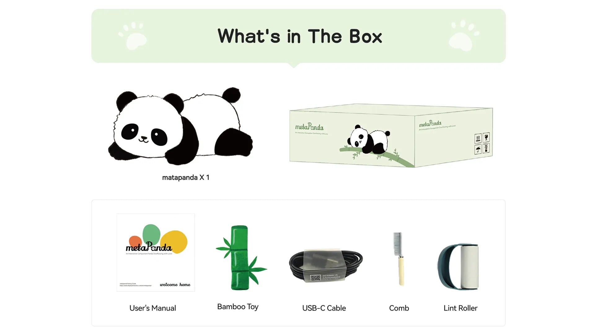 The metaPanda is an interactive robotic companion designed to emulate the charm of a young panda. Equipped with 8 touch sensors, it responds with lifelike movements and affectionate gestures. The soft, hypoallergenic fur provides a comforting tactile experience, while advanced voice recognition allows it to understand over 30 commands and respond to personalized wake-up words. When held, metaPanda hugs back and emits a warm heartbeat sensation, enhancing the sense of companionship. Additionally, feeding it with the included bamboo toy prompts joyful reactions, including chewing sounds and playful movements. With a 12-hour battery life and convenient USB-C charging, metaPanda offers enduring interaction and comfort.