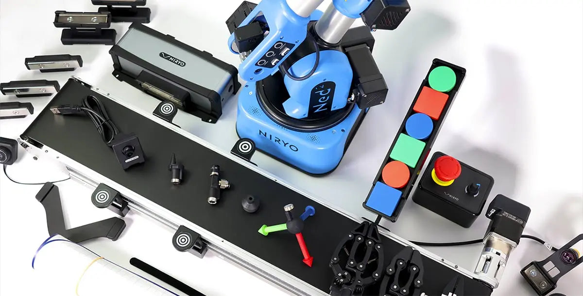 The Ned2 Discovery Bundle is the perfect robotic teaching solution. It's plug & play ecosystem allows students to explore unlimited possibilities. Coupled Ned2's intuitive programming software, NiryoStudio, students can easily build and prototype complex automation & industry 5.0 processes.
