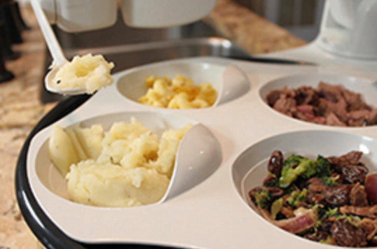Sticky foods, such as mac & cheese or mashed potatoes may result in larger bites due to their consistency. You can add extra cream, butter, cheese or broth to make sure the food doesn’t clump together.